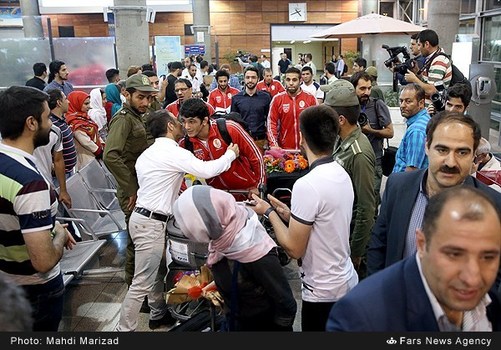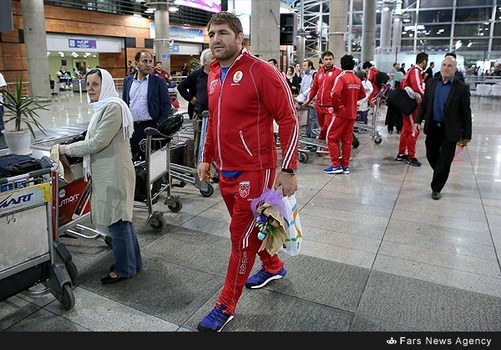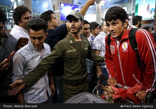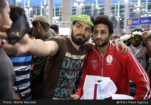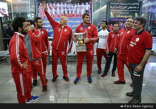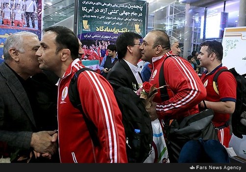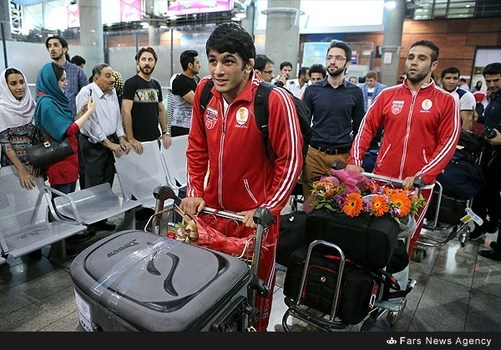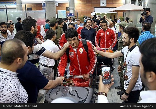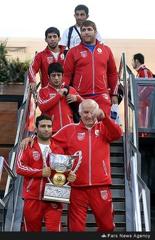 تیم ملی کشتی آزاد ایران که موفق شد با کسب چهار پیروزی متوالی مقابل تیم‌های آذربایجان، هند، آمریکا و روسیه عنوان قهرمانی جام جهانی را در خاک آمریکا به دست بیاورد، با استقبال مردم و طرفداران کشتی از طریق فرودگاه بین‌المللی امام خمینی (ره) وارد تهران شد. در مراسم استقبال از ملی‌پوشان کشتی آزاد، عبدالحمید احمدی معاون وزیر ورزش و جوانان، گرشاسبی مشاور وزیر ورزش، کیومرث هاشمی رئیس کمیته ملی المپیک و جمعی از اهالی کشتی حضور داشتند.
