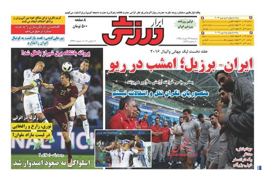صفحهاول روزنامههای ورزشی پنجشنبه ۲۷ خرداد