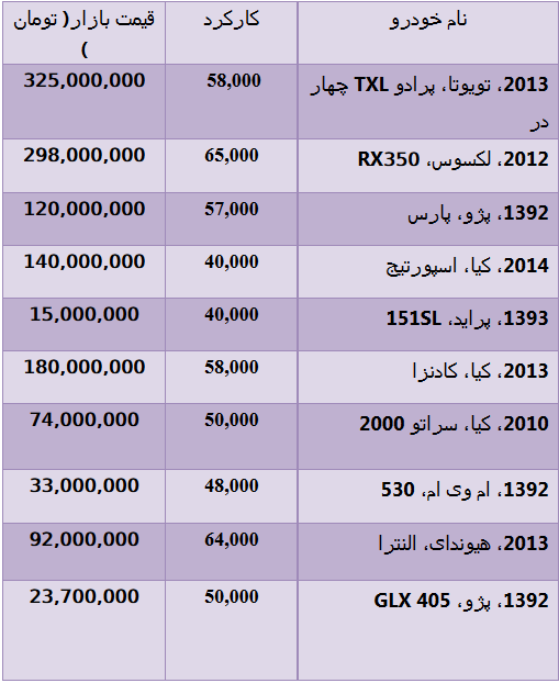 باشگاه خبرنگاران نوشت: قیمت انواع خودرو دست دوم به شرح جدول زیر است: