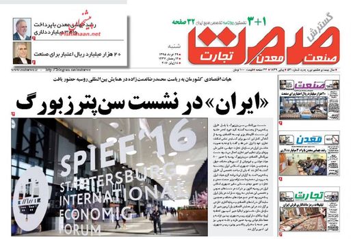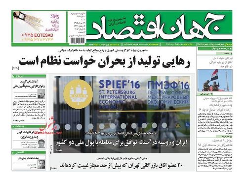 صفحه اول روزنامه های اقتصادی شنبه ۲۹ خرداد