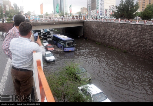 بارش شدید باران و تگرگ روز یکشنبه در تبریز باعث جاری شدن سیلاب در خیابان ها، زیر گذرها و ترافیک در شهر شد.