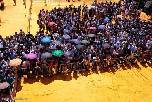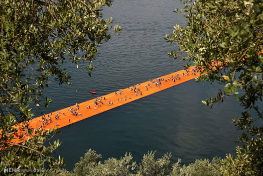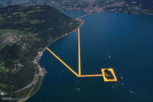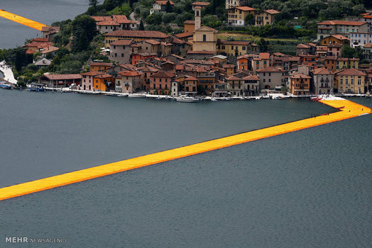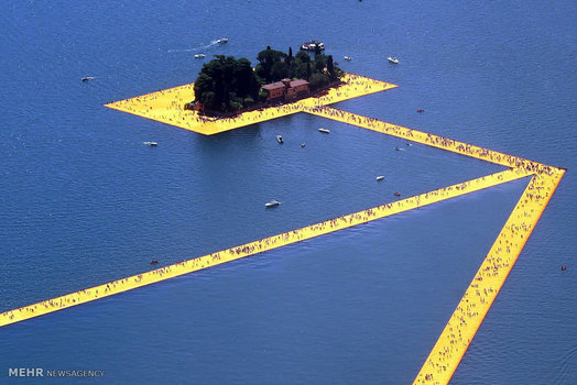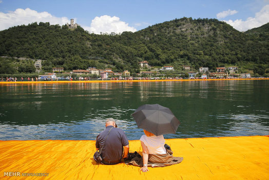 یک زن و شوهر هنرمند ایتالیایی، لنگرگاهی شناور از جنس پارچه بر روی دریاچه آیسئو در شمال ایتالیا طراحی کرده اند که روزانه پذیرای صدها بازدید کننده مشتاق است.