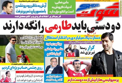 صفحهاول روزنامههای ورزشی پنجشنبه ۳ تیر