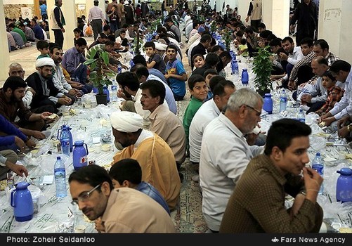 مراسم ضیافت افطار در حرم حضرت معصومه (س) هر شب پس از اقامه نماز مغرب و عشا، برگزار می شود.