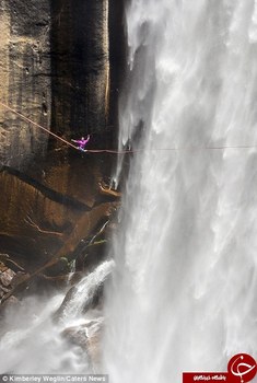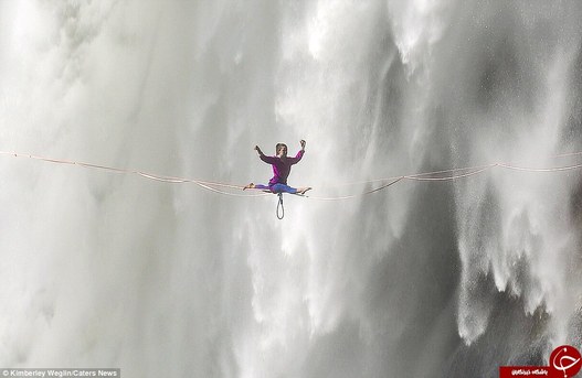 بندبازی یک خانم بر روی آبشار + تصاویر
