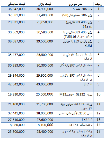 باشگاه خبرنگاران نوشت: قیمت انواع خودروهای داخلی به شرح جدول زیر است: