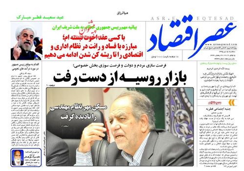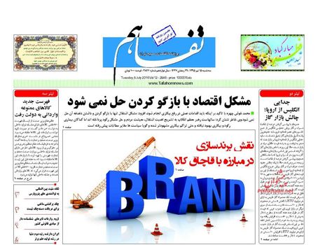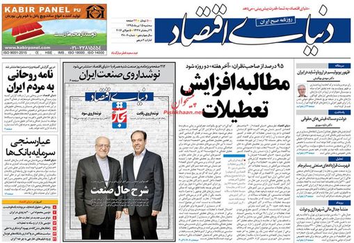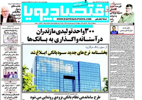 صفحه اول روزنامه های اقتصادی سهشنبه ۱۵ تیر