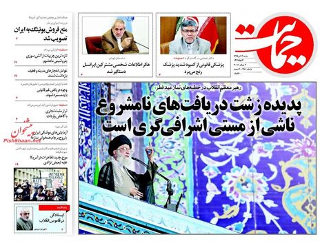 صفحه اول روزنامه های شنبه ۱۹ تیر
