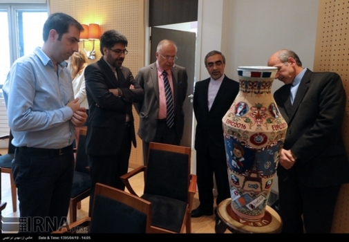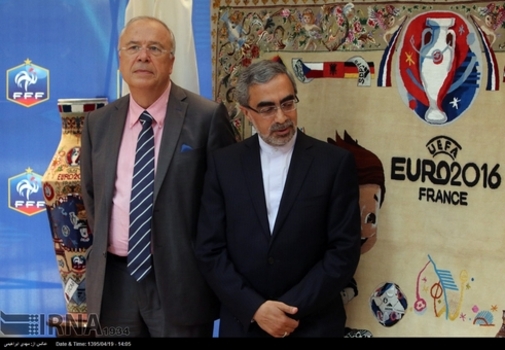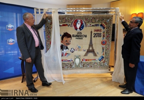 هدیه ای از طرف ملت ایران شامل یک تخته فرش ابریشم تبریز و دو «کوزه فرش» منقش به شمایل ویژه یورو ۲۰۱۶ و تیم های حاضر در آن روز شنبه طی مراسمی با حضور علی آهنی سفیر ایران در پاریس به «نوئل له گریت» رئیس فدراسیون فوتبال فرانسه تقدیم شد.