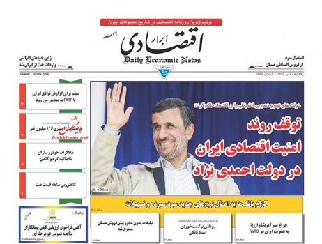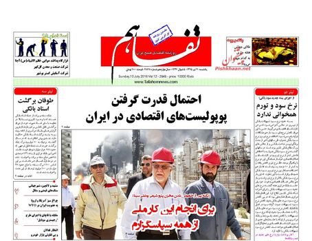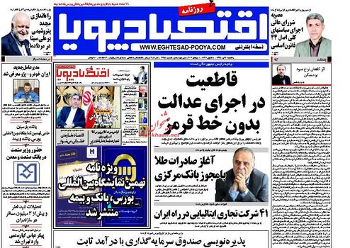 صفحهاول روزنامههای یکشنبه اقتصادی ۲۰ تیر