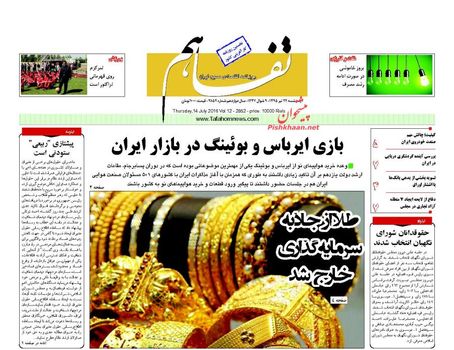 صفحه اول روزنامه های اقتصادی پنجشنبه ۲۴ تیر