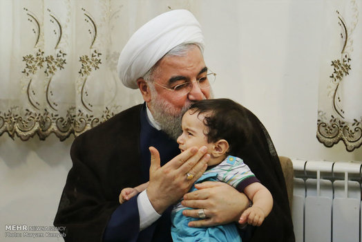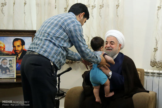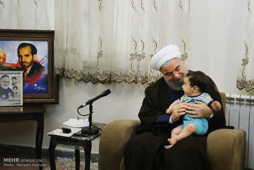 حجت الاسلام حسن روحانی رئیس جمهور عصر چهارشنبه با حضور در منزل شهید حمید اسداللهی با خانواده این شهید مدافع حرم دیدار کرد.