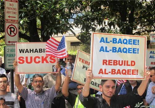 صراط: همزمان با سالگرد حادثه تخریب قبرستان بقیع به دست رژیم آلسعود، صدها نفر از مردم و مسلمانان آمریکا مقابل سفارت عربستان تظاهرات کردند.