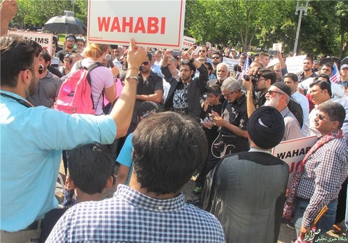 تظاهرات کنندگان در انتهای این مراسم شعار «سعودی، تروریست تروریست» سر دادند.