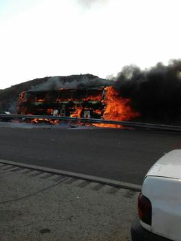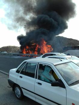 صراط: دقایقی پیش یک اتوبوس مسافربری که با حدود ۲۵ مسافر از سمت تهران به قم در حال حرکت بود، دچار حریق شد و در آتش سوخت.