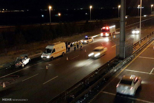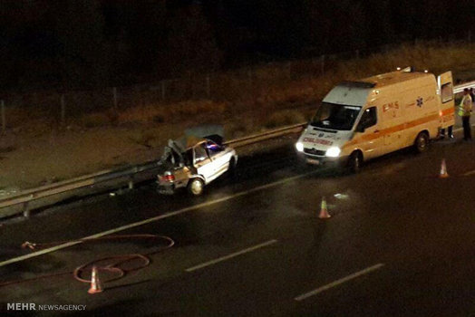 تصاویر/ تصادف پراید و نیسان در جاده قم