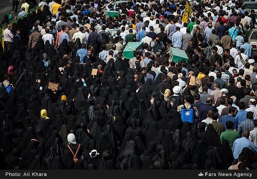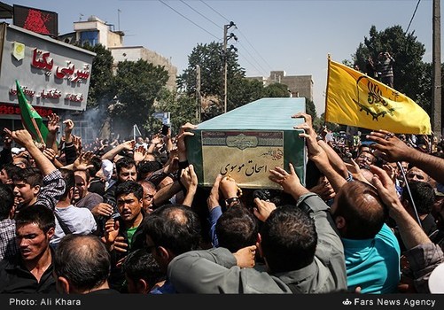 مراسم تشییع پیکر پنج تن از شهدای مطهر مدافع حرم حضرت زینب(س) تیپ فاطمیون صبح پنج شنبه سی و یکم تیر از میدان معلم در منطقه 18 تهران به سمت میدان الغدیر برگزار شد . شهیدان دلبر ابراهیمی، محمود عبدالهی، نجیب الله قربانی، سید اسحاق موسوی و حسن سلیمی در شهر حلب سوریه، توسط تکفیریها و تروریستها به شهادت رسیده اند.