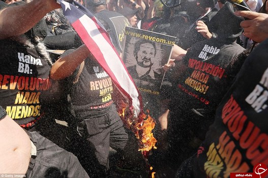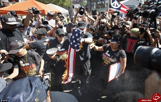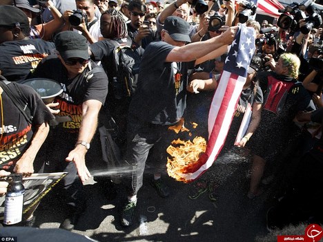کمونیستها با آتش کشیدن پرچم آمریکا علیه ترامپ و حزب جمهوریخواه تظاهرات