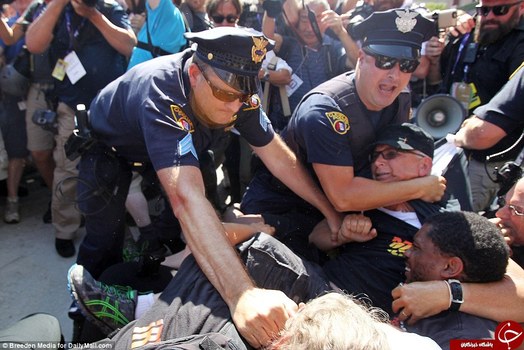 به گزارش باشگاه خبرنگاران، پلیس با استفاده از گاز اشکآور، تظاهرکنندگان کمونیست را متفرق و 17 نفر از آنها را دستگیر کرد. تظاهر کنندگان دونالد ترامپ را متهم به نژادپرستی می کنند. ترامپ از جمله کسانی است که مخالف ورود پناهندگان به آمریکاست. تظاهرکنندگان پیراهن هایی پوشیدند که روی آنها به زبان های انگلیسی و اسپانیایی نوشته شده است که خواهان انقلاب هستند.