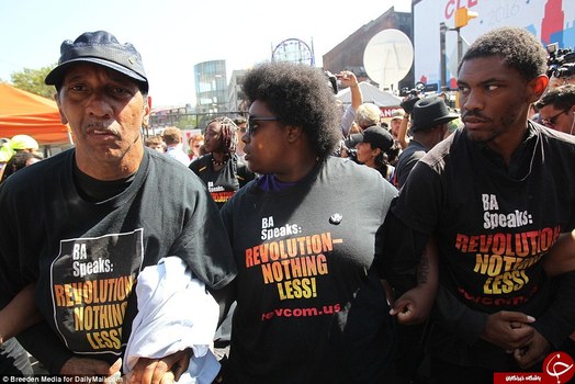 شرکت کنندگان در این تجمع با تشکیل حقله ی انسانی، شعار "ما در کنار مردم جهان هستیم" را فریاد می زدند. شعار دیگر این بود که دونالد ترامپ فاشیست و هیلاری کلینگتون جنایت کار جنگجو است.