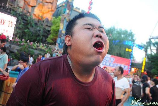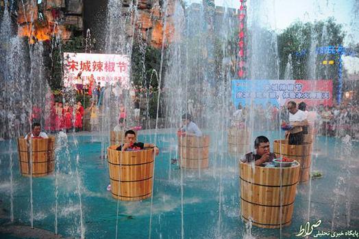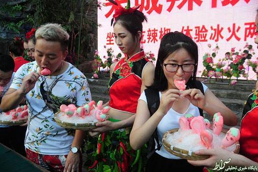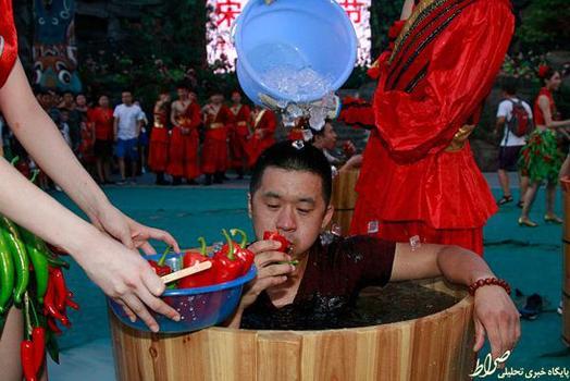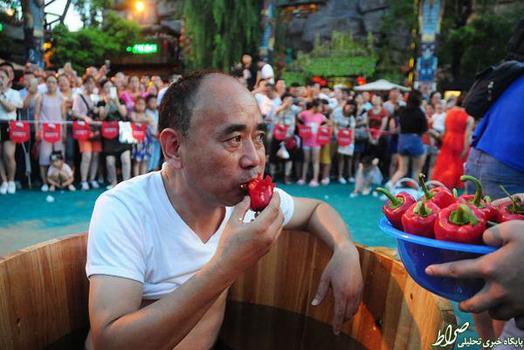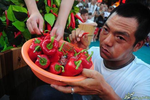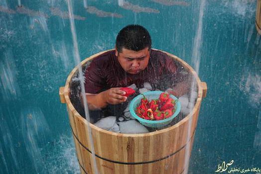 در حالیکه در شهر هانگژو واقع در استان ژجیانگ چین دمای هوا به 40 درجه رسیده است مردم این منطقه در رقابت خوردن فلفل شرکت کردند. شرکت کنندگان در این رقابت داخل یک سطل آب یخ نشسته و شروع به خوردن فلفل می کنند.
