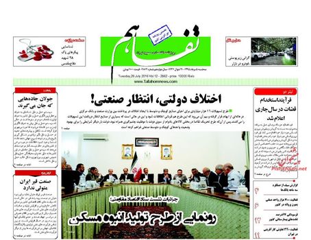 صفحهاول روزنامههای اقتصادی سهشنبه ۵ مرداد