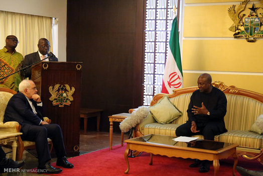 محمدجواد ظریف وزیر امور خارجه در سفر به غنا با جان درامانی ماهاما رئیس جمهوری این کشور دیدار کرد.