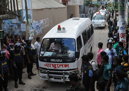 9 نفر از عناصر تروریستی داعش در درگیری مسلحانه با نیروهای پلیس بنگلادش در داکا پایتخت این کشور کشته شدند.  تمامی مظنونین کشته شده از اعضای گروهی غیرقانونی به نام حزب مجاهدین بنگلادش بودند.  در مقر این گروه پرچم گروه تروریستی داعش نیز کشف شده است.