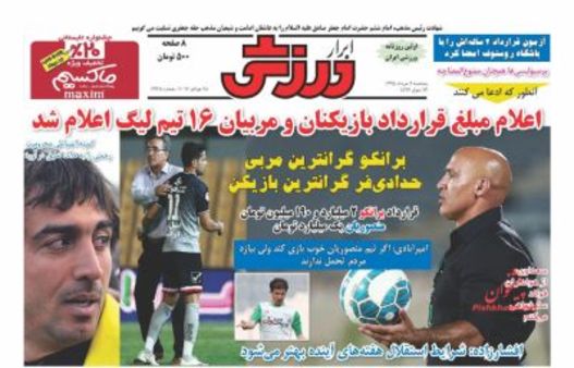 صفحهاول روزنامههای ورزشی پنجشنبه ۷ مرداد