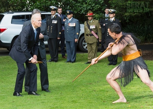 "جو بایدن" معاون رئیس جمهور آمریکا که به نیوزیلند سفر کرده در بدو ورود با استقبال متفاوتی مواجه شد. وی طی مراسمی در اوکلند پایتخت نیوزیلند مورد استقبال جنگجویان مائوری قرار گرفت. مائوریها، قومی از تبار پلینزی هستند که در سده دهم میلادی از جزایر گرمسیر و استوایی اقیانوس آرام به جزایر معتدل نیوزیلند کوچیدند و تمدن مائوری را بنا نهادند