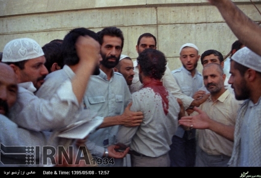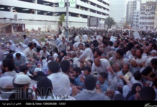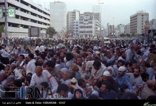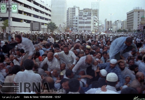 شب جستجوی خانهبهخانه شروع شد تا کسانی که فرار کرده بودند را دستگیر کنند. ساعت یازده که محاصره تمام شد، کسی حق نداشت به پیکر شهدا و مجروحین دست بزند. برق خیابان قطع شده بود. آمبولانسهای درب و داغان وسط خیابان رها شده بود. تقریبا هیچ جسدی سالم نبود؛ همه له شده بود و با چادرهای مشکی و سفید زنان که خونآلود و پاره بود پوشیده شده بود. زمین پر از لنگه کفش و دمپایی، تکههای پاره لباس، خرده شیشه و قلوه سنگ بود. بوی گاز و باروت فضا را پر کرده بود. کف خیابان پر از خون بود. مجروحین و شهدا را روی هم سوار ماشینهایی که شبیه ماشینهای حمل حیوانات بود میکردند و میبردند. رسیدگی به حال مجروحین عجیب بود. شاهدی دیده بود که دست یک زائر ایرانی از ناحیه مچ تیر خورده بود و او در برابر تصمیم پزشکان برای قطع دستش مقاومت میکرد. اما پزشکان با کمک مأموران امنیتی دست او را قطع کردند.