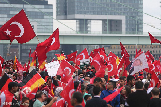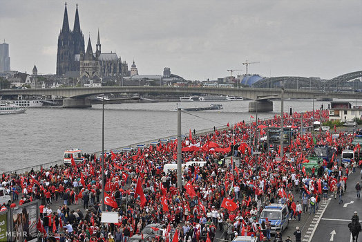 50 هزار ترک ساکن آلمان در حمایت از رجب طیب اردوغان، رئیس جمهوری ترکیه، در شهر کلن دست به تظاهرات زدند.