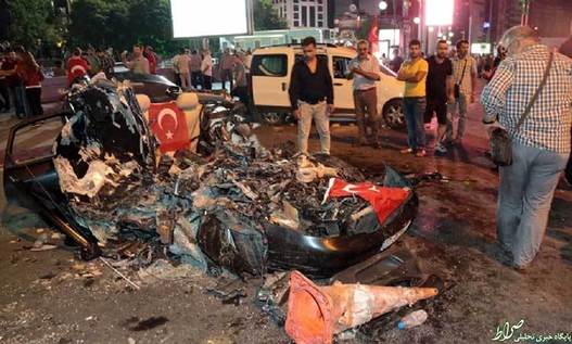 صراط: یک سایت خبری در ترکیه، تصاویری از خودروهایی منتشر کرد که در شب کودتای نافرجام، توسط تانک ها خرد شدند.