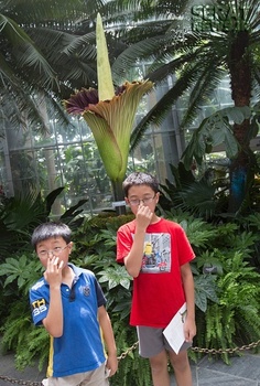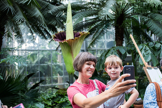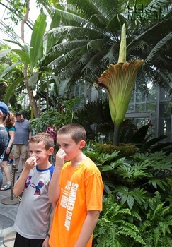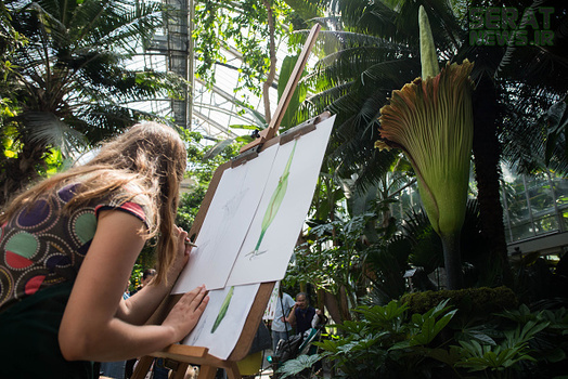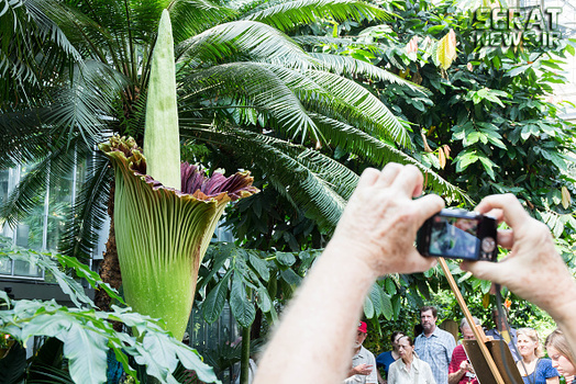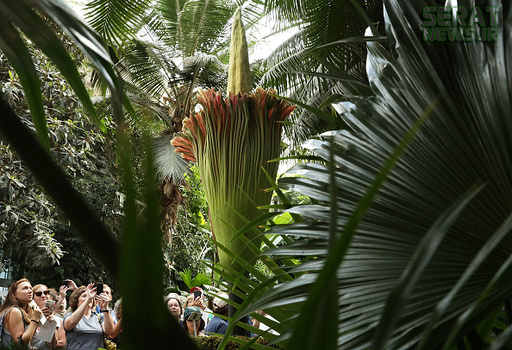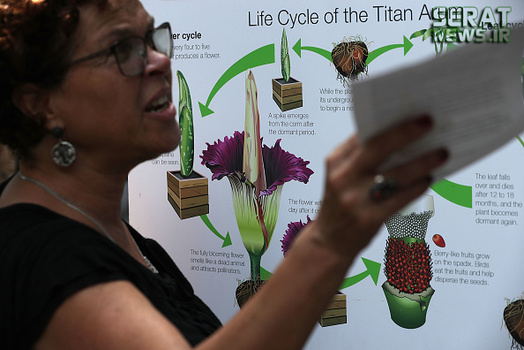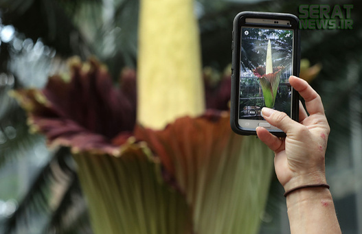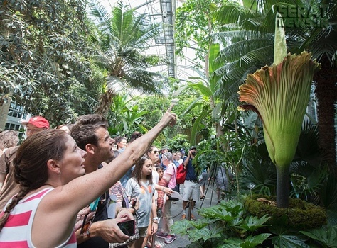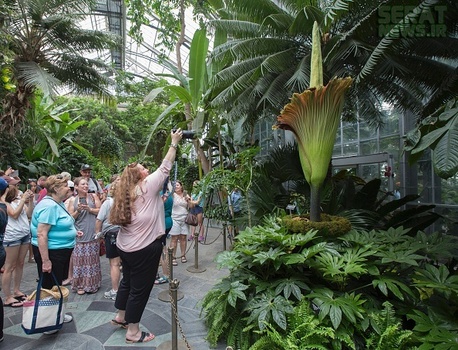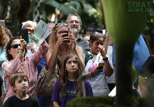 صدها گردشگر برای تماشای گل تیتان آروم (Titan arum) که به عنوان بدبوترین گل جهان شناخته شده در باغ گیاه شناسی آمریکا در واشنگتن دی سی جمع شده اند. این گل بسیار بدبو که در اوج شکوفایی به سر میبرد از خود بوی جسد متعفن و شبیه گوشت فاسد منتشر میکند. این گل بومی جنگلهای مرطوب و بارانی مرکز سوماترا در غرب اندونزی است.