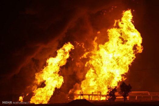 تصاویر/ آتشسوزی در تاسیسات گاز گناوه