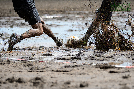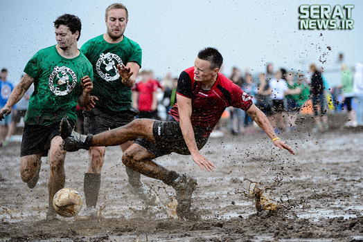تصاویر/ مسابقات قهرمانی فوتبال در گِل و لای