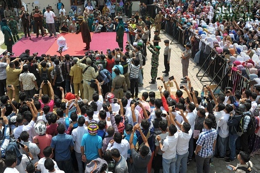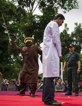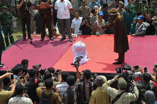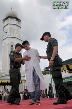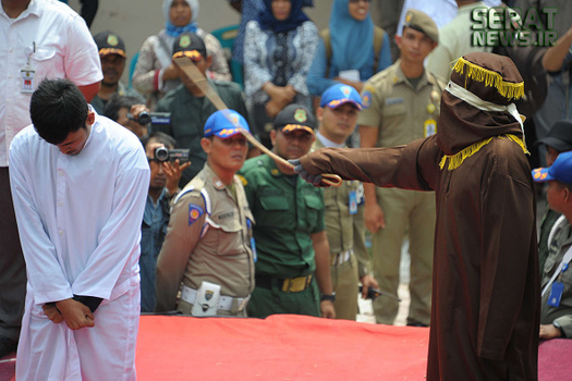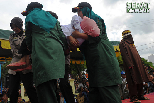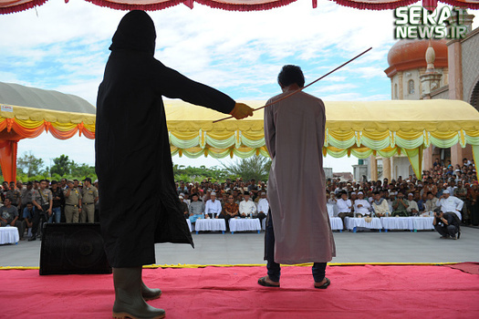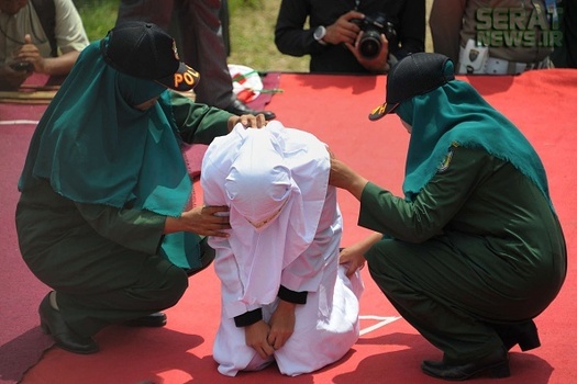 پلیس شریعت اندونزی در استان آچه این کشور چند زن و مردم را به دلیل تخلف در ملأ عام شلاق زد. سه مرد به دلیل قمار در مسابقه جنگ انداختن خروس ها و چند زن نیز به دلیل خلوت کردن با مردان شلاق خوردند. آچه تنها استان اندونزی است که با داشتن اکثریت مسلمان اجازه اجرای قوانین شریعت را دارد.