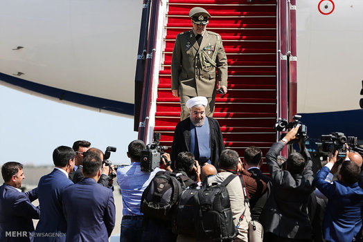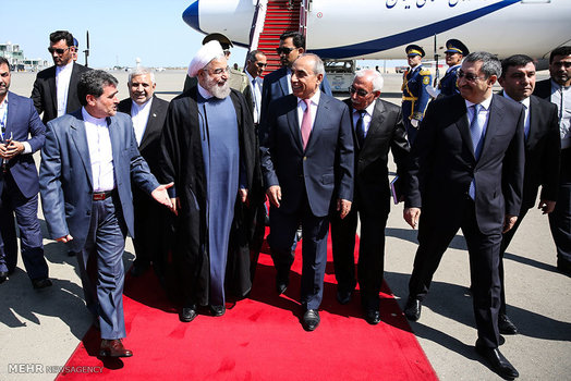 حجت السلام حسن روحانی رئیس جمهور به منظور شرکت در اجلاس سه جانبه ایران و روسیه و جمهوری آذربایجان صبح امروز یکشنبه وارد باکو ،پایتخت آذربایجان شد.