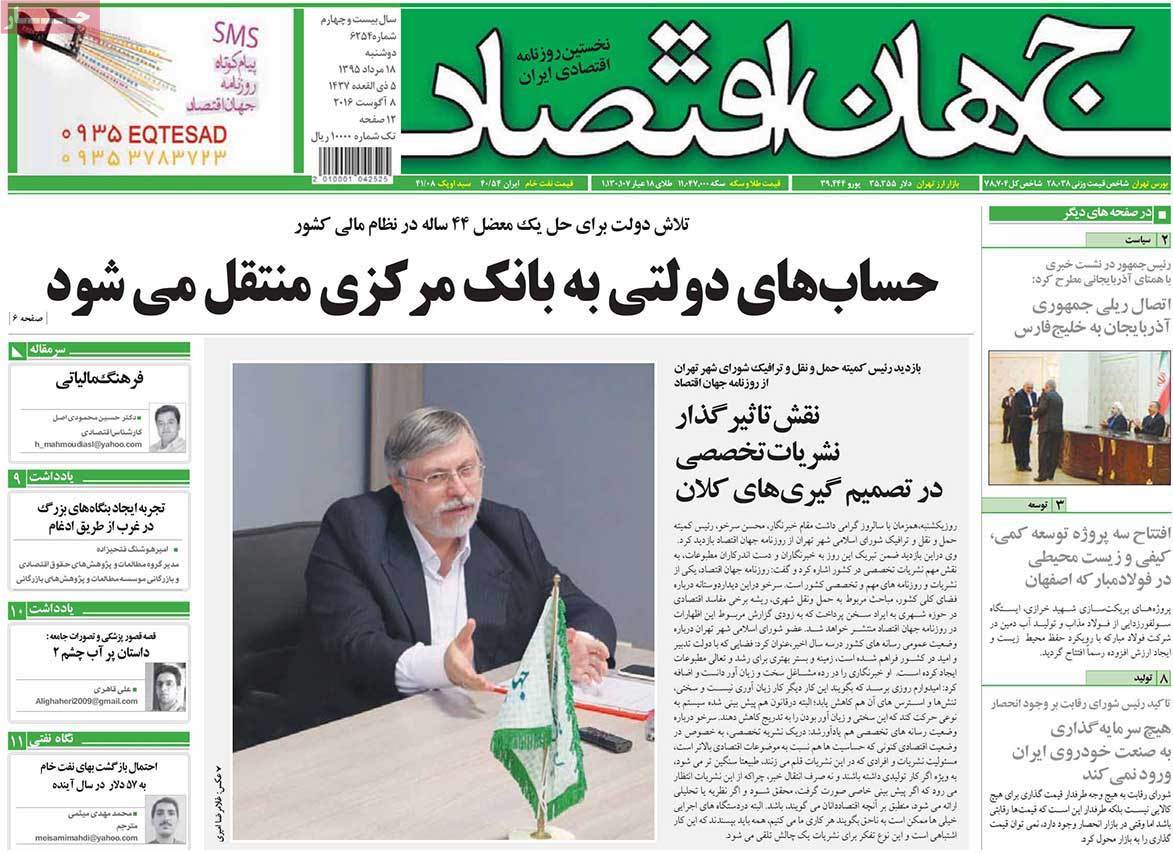صفحهاول روزنامههای اقتصادی دوشنبه 18 مرداد