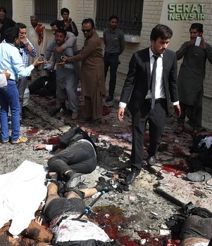 انفجار بمب در بیمارستانی در شهر کویته در ایالت بلوچستان پاکستان دستکم 53 کشته و 56 زخمی بر جای گذاشت. انفجار زمانی رخ داد که شماری از مردم برای تشییع جنازه بلال انوار کاسی وکیل برجسته که صبح دوشنبه در کویته به ضرب گلوله کشته شد، گرد آمده بودند. هنوز هیچ گروهی مسئولیت این انفجار را بر عهده نگرفته است.