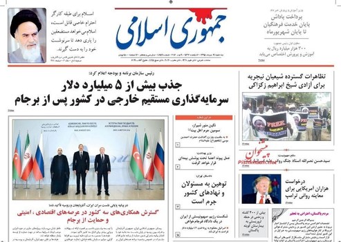 صفخه اول روزنامههای سهشنبه ۱۹ مرداد