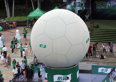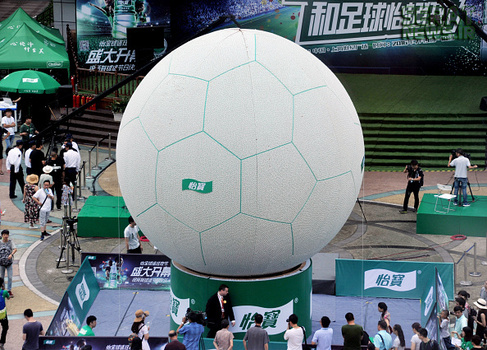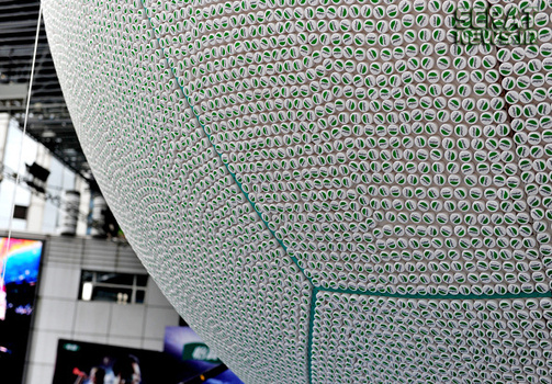 در یک منطقه گردشگری در شانگهای چین مجسمه یک توپ بزرگ فوتبال قرار دارد که با استفاده از 160 هزار بطری نوشیدنی ساخته شده است. این توپ در کتاب رکوردهای گینس ثبت شده است.