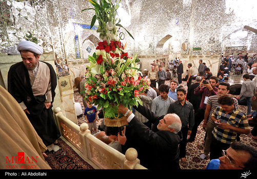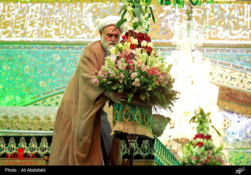 تصاویر/ تعویض گلهای ضریح امام رضا(ع)