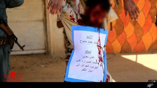 عناصر وابسته به گروه تروریستی داعش با انتشار تصاویری از اعدام 5 نفر به اتهام کمک به خروج غیرنظامیان از مناطق تحت اشغال این گروه خبر داد.