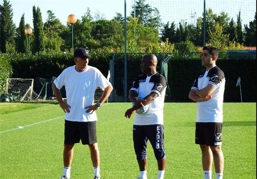 سپس بازیکنان به دو گروه تقسیم شدند و به حرکات تیمی با استفاده از توپ پرداختند.