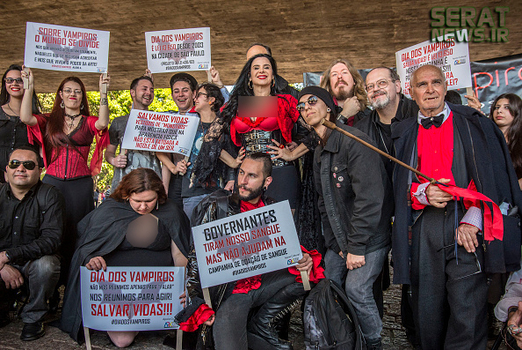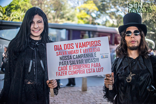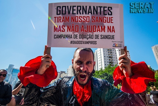 دهها نفر از فعالان اجتماعی در سائوپائولوی برزیل در اعتراض به کمبود اهدای خون در این شهر تظاهرات کردند. آنان ظاهر خود را به شکل خون آشامان فیلمهای سینمایی درآورده تا بدین صورت جلب توجه کرده و مردم را تشویق به اهدای خون کنند.