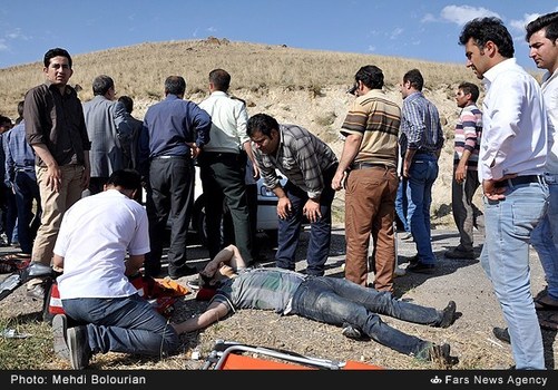 براثر واژگونی مینی بوس حامل معدن چیان معدن مس انجر در 10 کیلومتری شمالغرب اهر که ساعت 16:20 دقیقه عصر دوشنبه 25 مردادماه اتفاق افتاد ، تعداد 1 نفر کشته و 12 نفر از معدنچیان مصدوم شدند . مصدومان حادثه دیده توسط نیروهای امدادی به بیمارستان باقرالعلوم این شهر انتقال یافته و مورد درمان قرار گرفتند . حال یک نفر از حادثه دیدگان وخیم گزارش شد که توسط اوژانس هوایی به تبریز انتقال یافت.