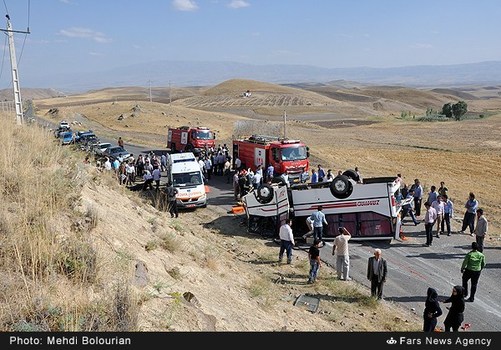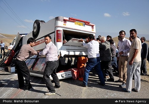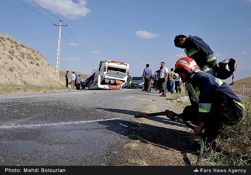 تصاویر/ واژگونی مینیبوس معدنچیان انجرد