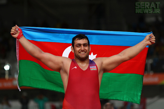 تصاویر/ دور افتخار کشتیگیر ایرانی با پرچم آذربایجان