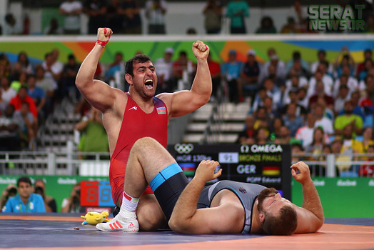 "صباح شريعتی" کشتی گیر ایرانی تیم ملی آذربايجان در دیدار ردهبندی 130 كيلوگرم رقابتهای كشتی فرنگي المپیک 2016 ریو با نتيجه 3 بر صفر ادوارد پاپ از آلمان را شکست داد و به مدال برنز دست یافت.